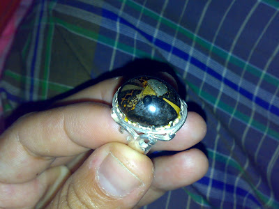 -Sila klik imej untuk tatapan lebih jelas- Permata hitam pekat, likat, berkilat & bila disuluh lampu, warna lutsinar warna merah. Ikatan...